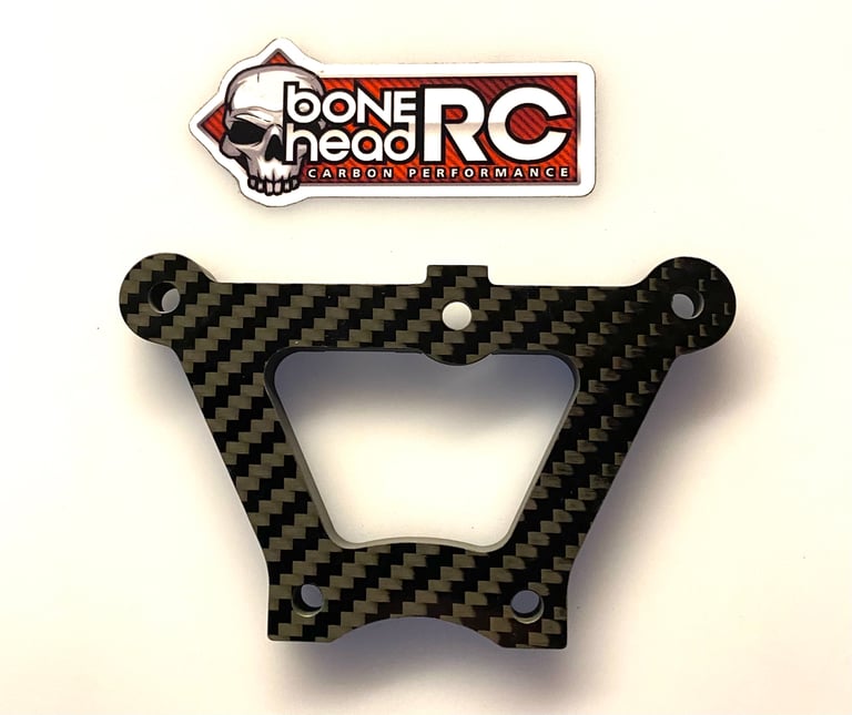 Machined from 8mm thick genuine carbon to the usual Bonehead Rc standards, the pocketed design fits the stock plastic front chassis brace part like a glove, allowing extra support for the stock plastic brace also fits aftermarket centre braces.