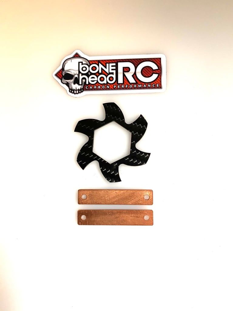 Machined from 100% genuine carbon fibre (brake spacer) layered specially to BoneHead-RC specification for an unparalleled match on strength, reliability, and longevity.