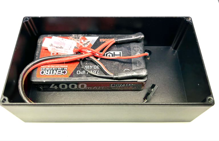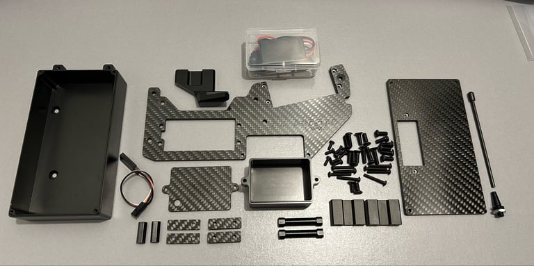 Billet anodised alloy battery and RX boxes for a sleek look, custom designed to make as water tight as possible due to the entry slot locations and grooved carbon lids.